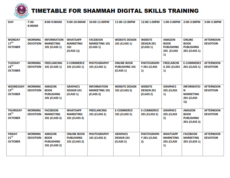 SHAMMAH DIGITAL SKIILLS TRAINING